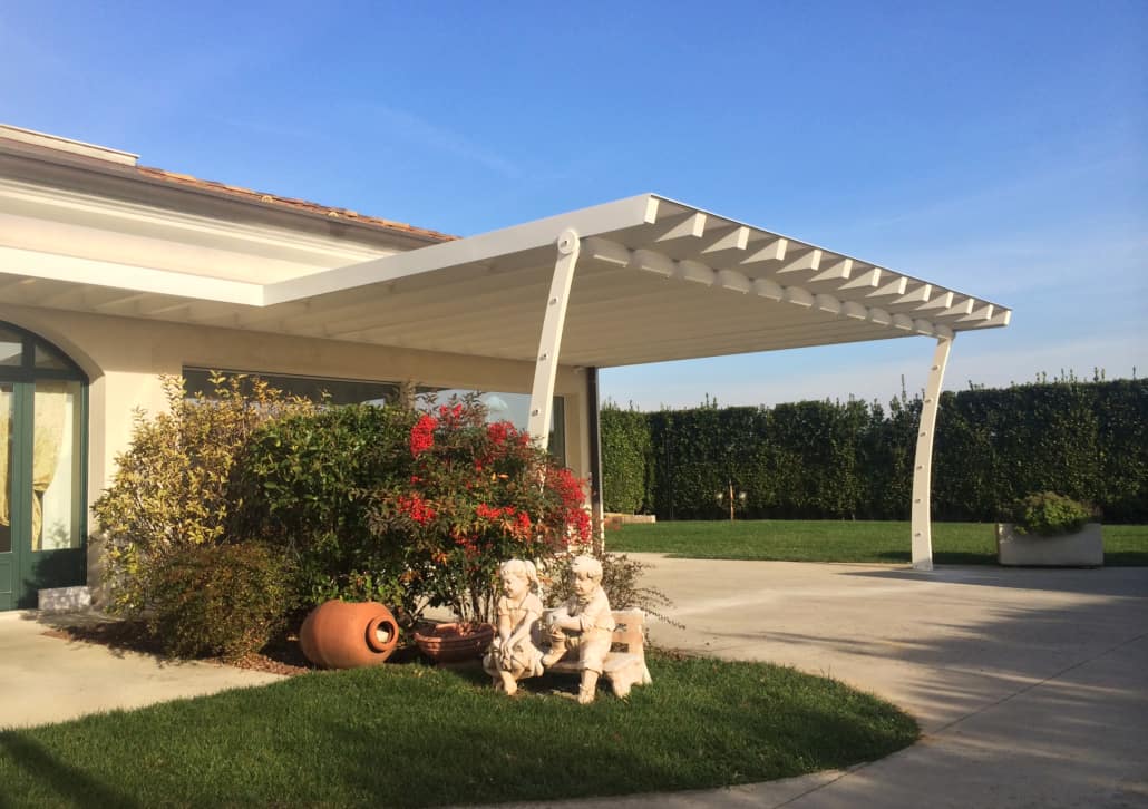 Prodotti totalmente personalizzabili, dal design strutturale dei pilastri fino alla tipologia di copertura, in PVC filtrante (adatta per creare ambienti luminosi) o con pannellatura coibentata (adatta eventualmente ad istallare pannelli fotovoltaici) entrambe completate da una comoda e suggestiva illuminazione con tecnologia LED dimerabile e faretti ad incasso