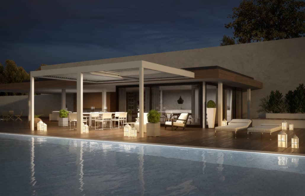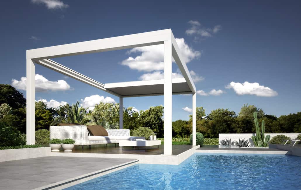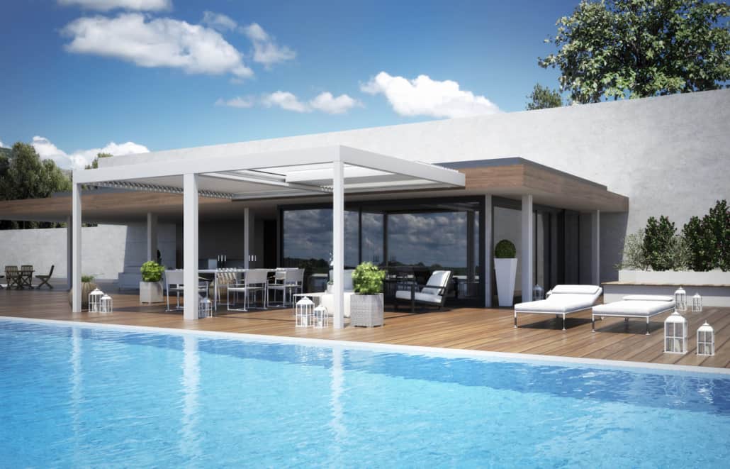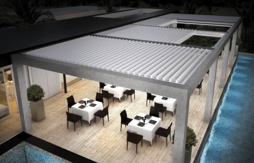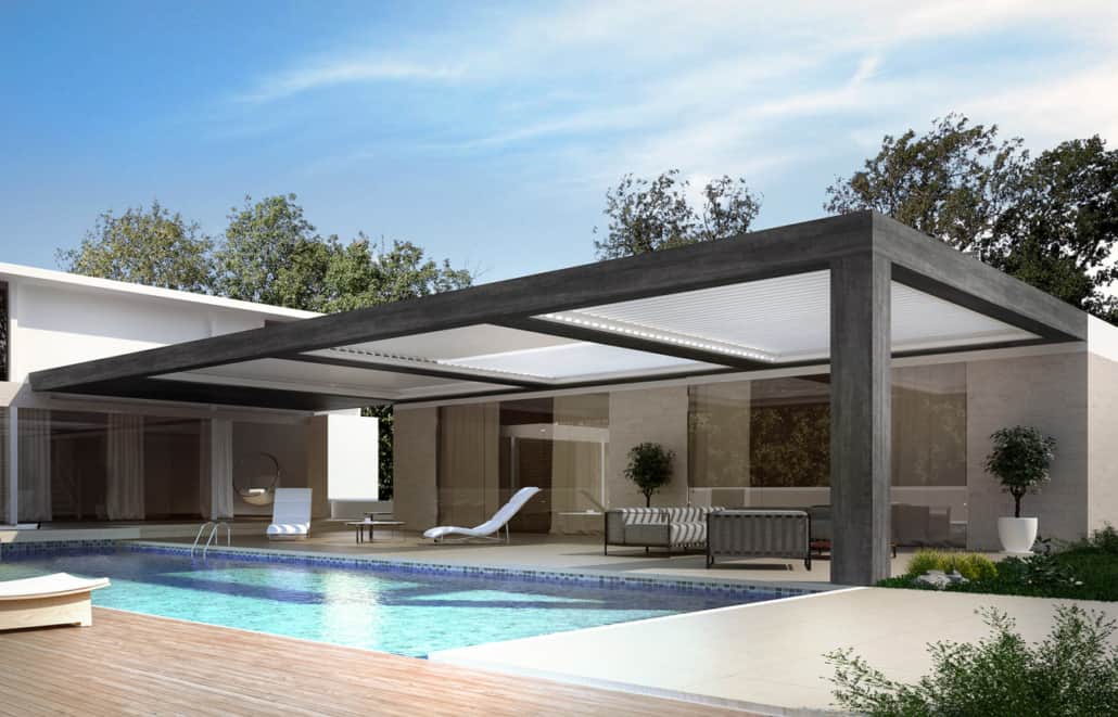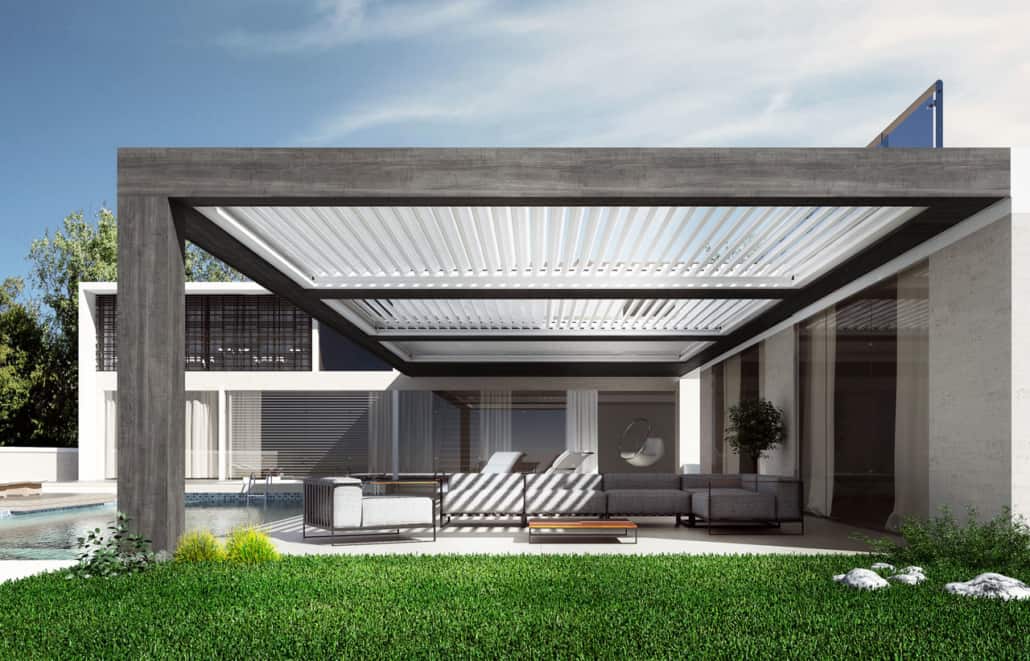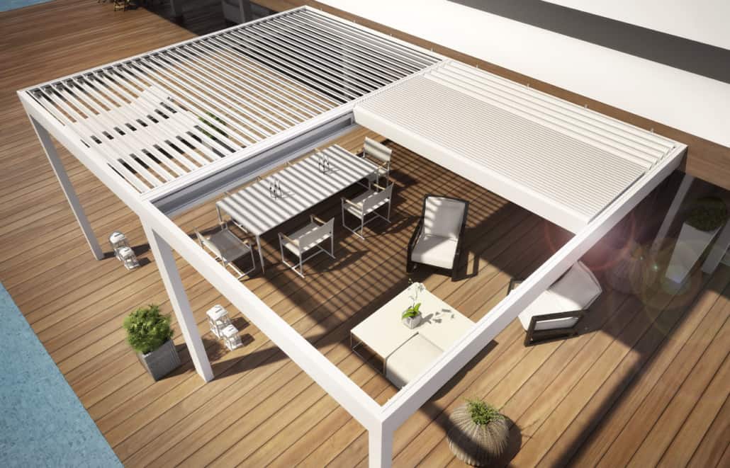 PERGOLA CON LAME ORIENTABILI E RETRATTILI