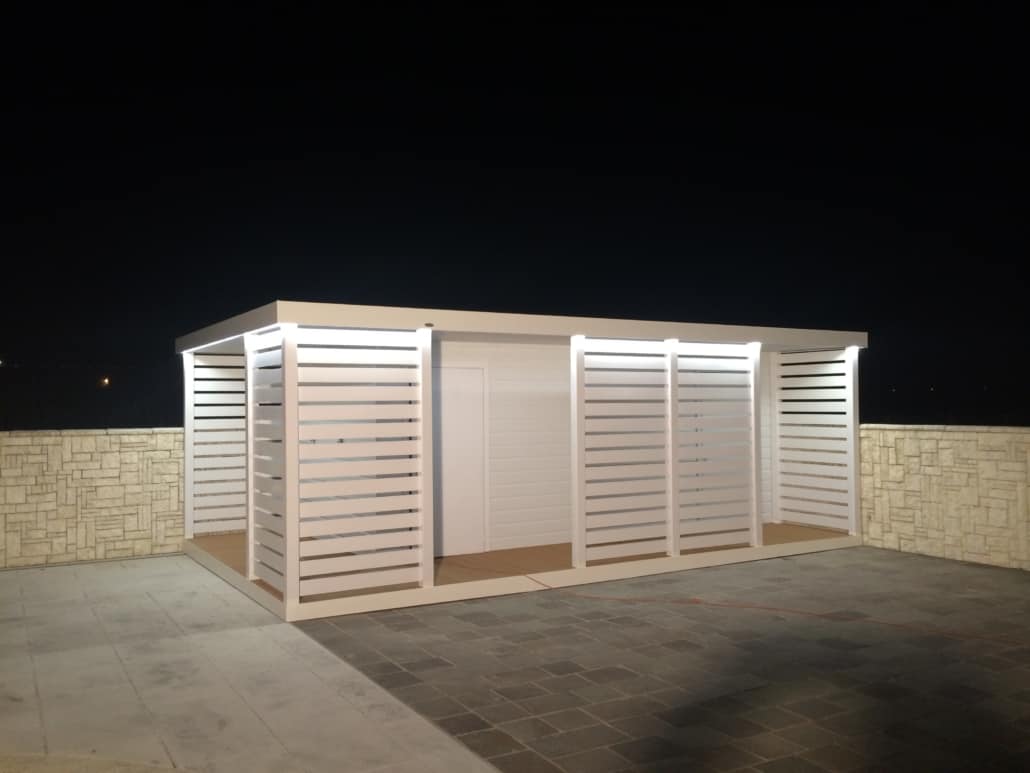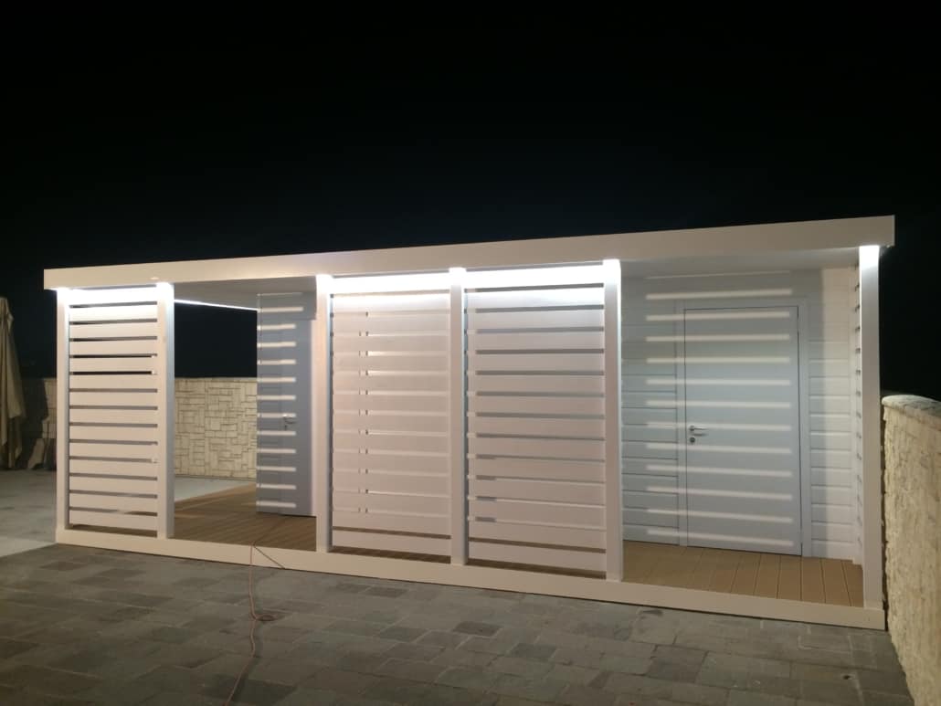• RICOVERO ATTREZZI utile anche alla protezione e mascheramento di eventuali pompe esterne o maccanismi di pulizia che solitamente alcune piscine necessitano