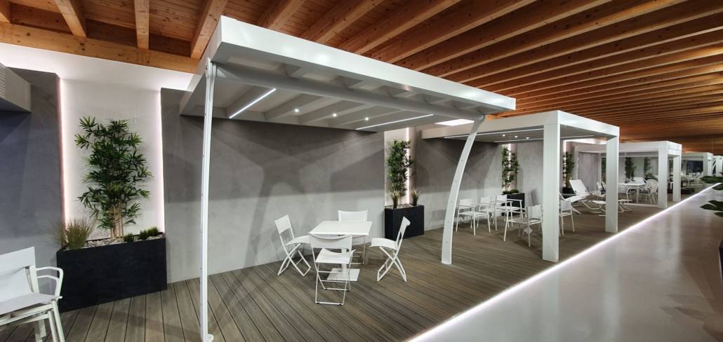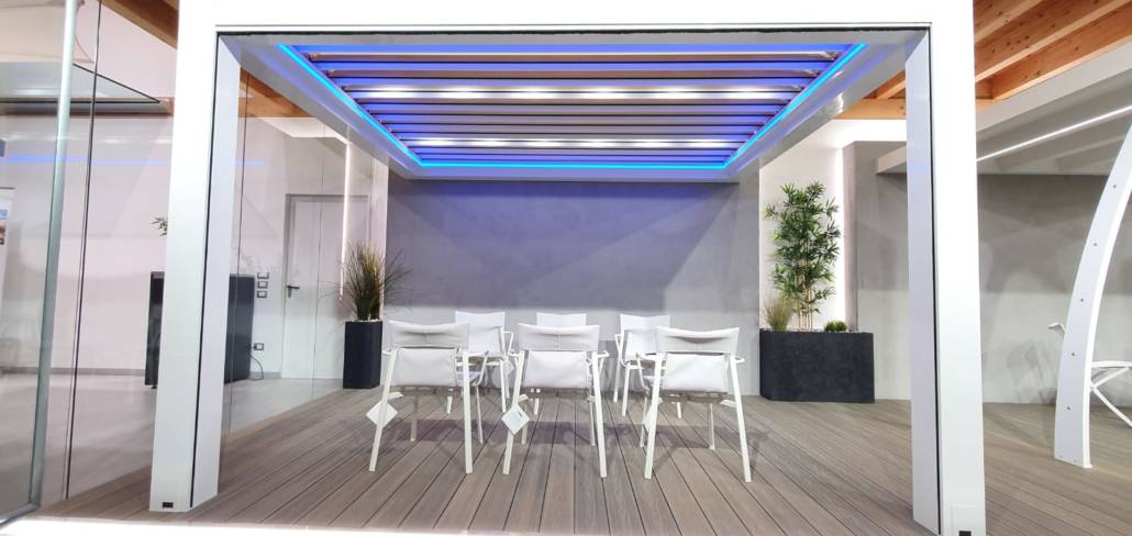 • PERGOLA CON LAME ORIENTABILI E RETRATTILI
