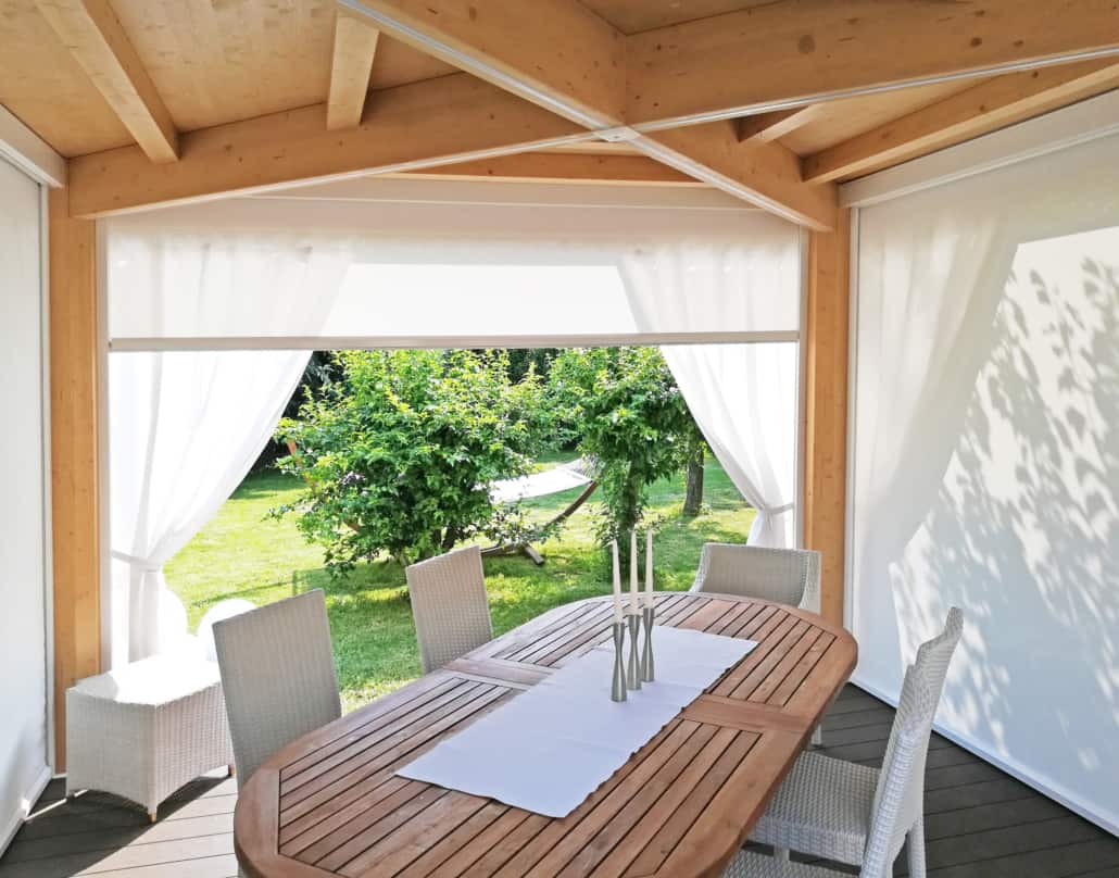 L’acronimo SHY ZIP identifica questa tipologia di tende caratterizzate da guide laterali contenenti il sistema brevettato zip, grazie al quale il telo viene mantenuto in costante trazione garantendo una chiusura ermetica ed un’alta resistenza al vento.